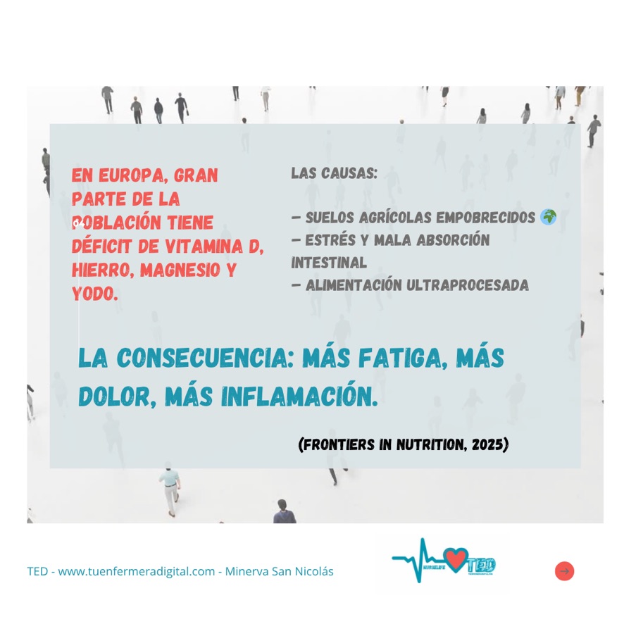 Un estudio publicado en Frontiers in Nutrition (2025) mostró que restaurar los niveles séricos de estos micronutrientes mejora la calidad del sueño, la concentración y la percepción del dolor en personas con síndromes de sensibilización central.